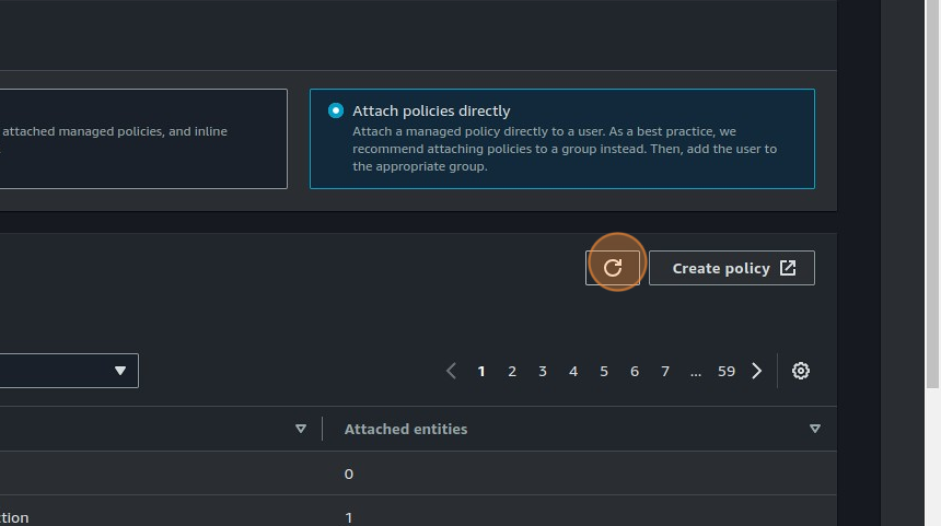 If you canβt find it, click the refresh icon next to the Create policy button.